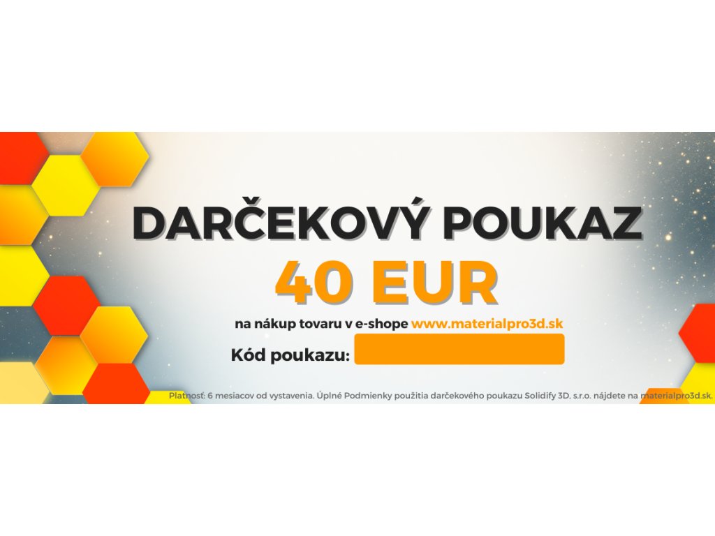 Darčekový poukaz 40 EUR – ideálny darček pre všetkých nadšencov 3D tlače