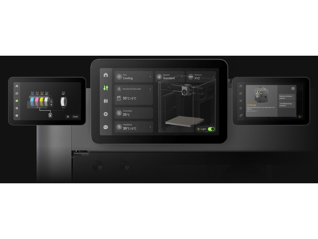 Úplne prepracovaný je aj ventilačný systém: prúdenie vzduchu je automaticky riadené a tlačiareň buď nasáva chladný vzduch zvonka, alebo cirkuluje ohriaty vzduch zvnútra, aby udržala optimálnu teplotu. To umožňuje bezpečne tlačiť materiály citlivé na teplotu aj technické materiály – od PLA po ABS a ďalej.