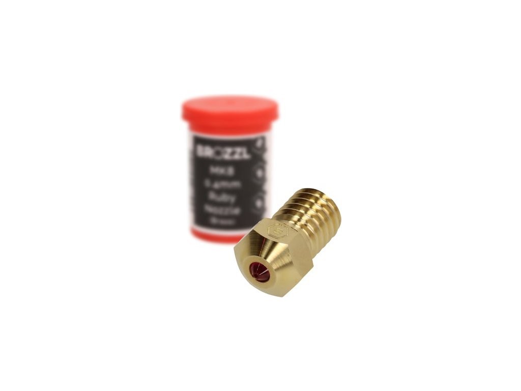 Trysku, ktorá je doplnená rubínovú koncovkou, neobrousí ani najtvrdší 3D tlačové materiály. Je vhodná pre tlač väčšiny filamentov. Napr .: PLA, ABS, CPE, PET (G), Nylon a kompozitné materiály s prímesou abrazívnych látok vrátane karbónových a sklenených vlákien a ďalších. Vyniká výbornou tepelnou vodivosťou i precíznu spracovaním mosadze. Vysoký stupeň tvrdosti rubínovej koncovky zaručí, že je možné tlačiť aj veľmi tvrdé vlákna s hrubými časticami.