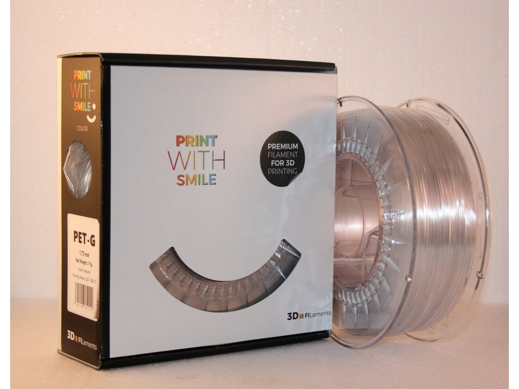 Modifikovaný polyethylentereftalátglykolem - PET-G je amorfní termoplastický kopolyester, který je oblíbený pro své skvělé pevnostní a optické vlastnosti. Filament PET-G je vhodný především pro profesionální 3D výtlačy s technologií FDM. Je pružnější a měkčí než PLA nebo ABS filamenty. Má velmi malé smrštění a výbornou přilnavost vrstev, díky čemuž je vhodný pro velkoplošné 3D tlačy. PET-G je vysoce chemicky odolný vůči kyselinám a během tlaču nevydává žádný nepříjemný zápach. I proto je 3D tlač pomocí PET-G Smile tak příjemný! Další nespornou výhodou tohoto filamentu je jeho recyklovatelnost.