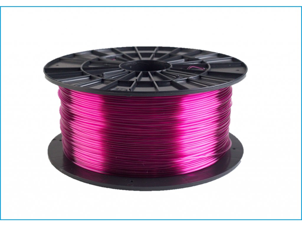 PET-G tlačová struna fialová transparentná s priemerom 1,75mm je vhodná pre tlač na všetkých tlačiarňach (FDM) s vyhrievanou podložkou. Tlač z tohoto materiálu je ľahký a výsledný výtlačok je lesklý s príjemným farebným zafarbením.
