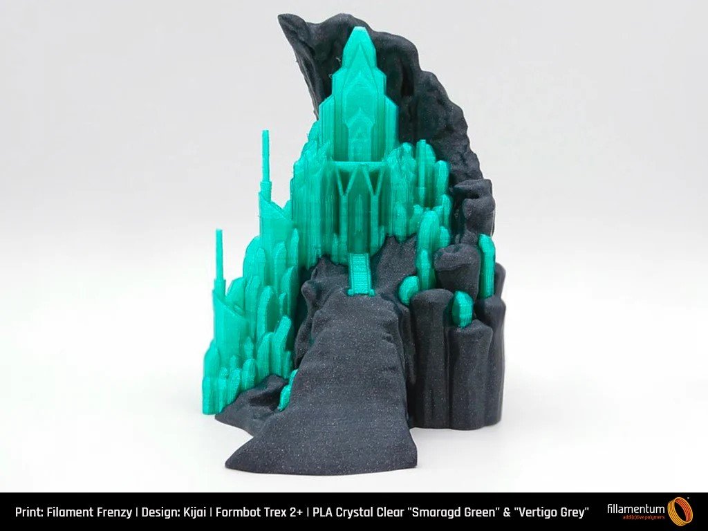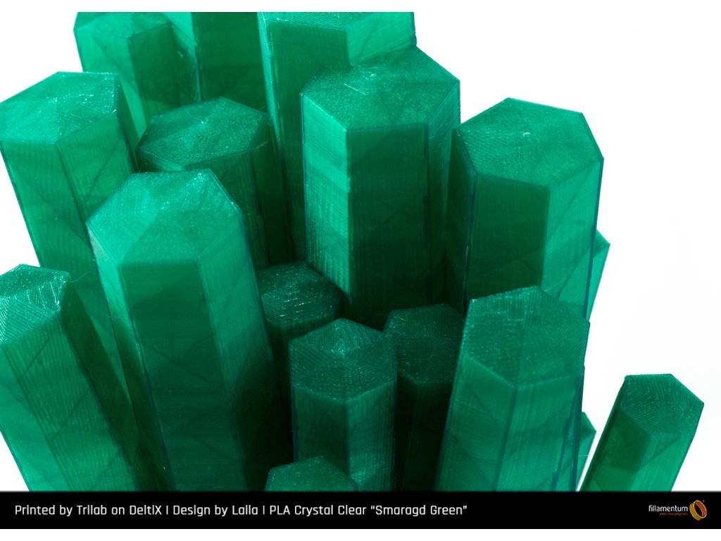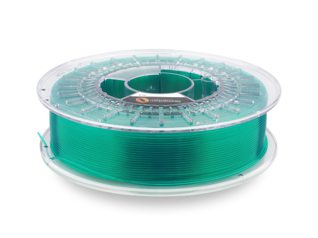 Transparentný zelený filament PLA Crystal Clear Smaragd Green je materiál pre FFF (tiež známe ako FDM) technológie 3D tlače, vyrobený v Česku značkou Fillamentum. Výhodou tohto materiálu je jednoduché použitie pre 3D tlačiarne. Materiál umožňuje vysokú kvalitu tlače aj pri náročných detailoch.