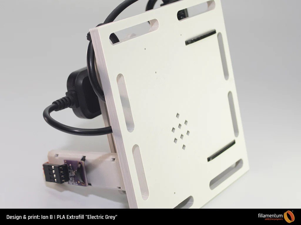 Svetlo sivý filament PLA Extrafill Electric Grey je materiál pre FFF (tiež známe ako FDM) technológie 3D tlače, vyrobený v Česku značkou Fillamentum. Výhodou tohto materiálu je jednoduché použitie pre 3D tlačiarne. Materiál umožňuje vysokú kvalitu tlače aj pri náročných detailoch.
