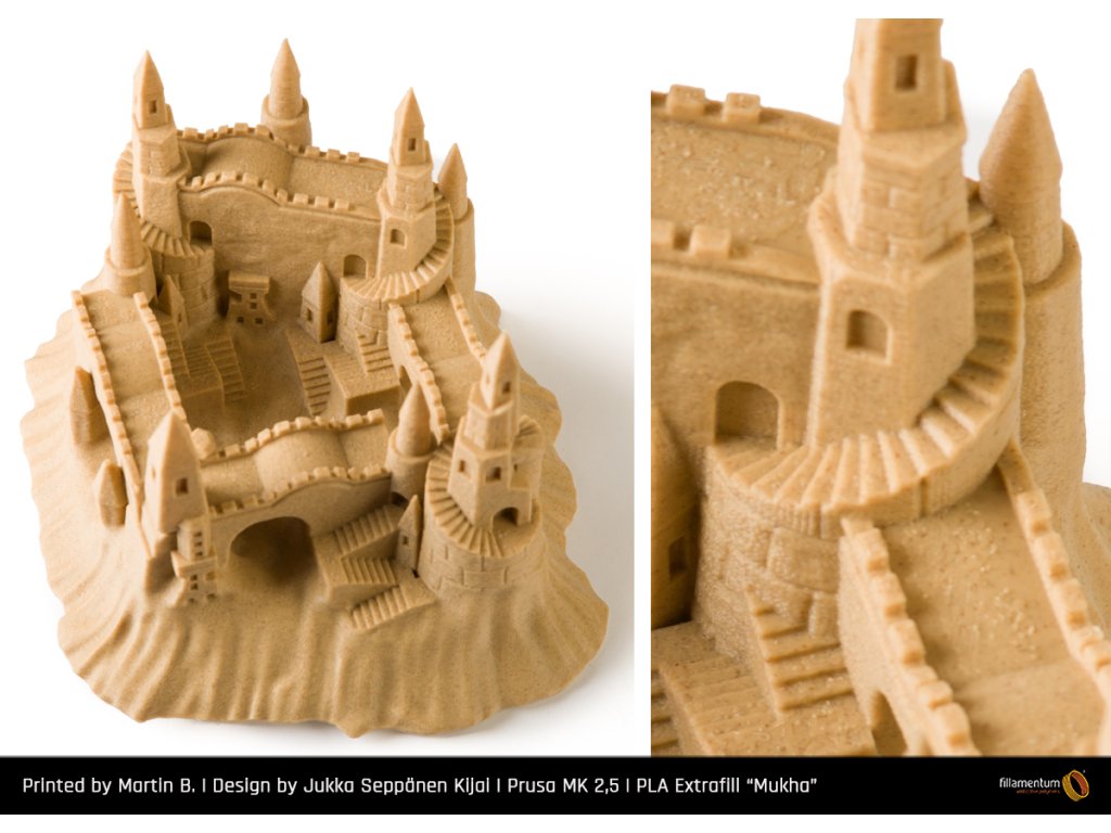 Pieskovo béžový filament PLA Extrafill Mukha je materiál pre FFF (tiež známe ako FDM) technológie 3D tlače, vyrobený v Česku značkou Fillamentum. Výhodou tohto materiálu je jednoduché použitie pre 3D tlačiarne. Materiál umožňuje vysokú kvalitu tlače aj pri náročných detailoch.