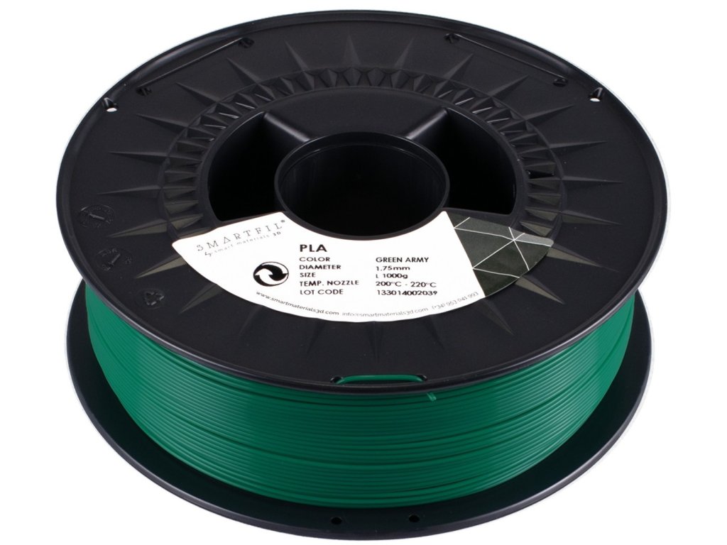 Smartfil PLA v odtieni Green Army od španielskej značky Smart Materials je biologicky rozložiteľný filament určený na jednoduchú a spoľahlivú 3D tlač na väčšine bežných FDM/FFF 3D tlačiarní. Vďaka minimálnemu zmršťovaniu a veľmi dobrej rozmerovej stabilite je vhodný ako na menšie detailné modely, tak aj na väčšie výtlačky bez rizika deformácií (warping).