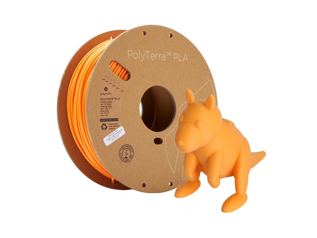 PolyTerra ™ PLA je nová ekologickejšia generácia filamentov od spoločnosti Polymaker, ktorá je od základu navrhnutá tak, aby bola šetrná k životnému prostrediu. Je kombináciou organických minerálov a PLA, čo výrazne znižuje obsah plastov a vytvára ekologickejšie 3D tlačový materiál. Tento materiál sa tlačí rovnako ako PLA, takže nebudete musieť meniť žiadna tlačová nastavenia. Navyše v niektorých vlastnostiach (napríklad premostenie alebo previs) dosahuje lepšie výsledky ako klasické PLA. Výsledný výtlačok má krásne matný povrch, čo lepšie skryje línie vrstiev.