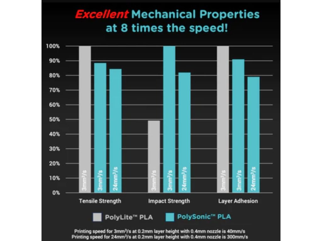 Filamenty PolySonic PLA od značky Polymaker sú vyvinuté špeciálne pre jednoduchú 3D tlač vo vysokých rýchlostiach. Vyznačujú sa kompatibilitou so všetkými (aj staršími) 3D tlačiarňami, výbornou presnosťou tlače a priľnavosťou vrstiev.