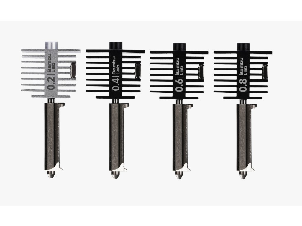 Vylepšite svoje možnosti 3D tlače s oficiálnou sadou All-in-one Hotends Kit pre tlačiarne Bambu Lab A1 a A1 Mini. Táto sada obsahuje až štyri hotendy s rôznymi priemermi trysiek, takže si môžete jednoducho zvoliť ideálny nástroj na detailné miniatury, štandardné výtlačky aj rýchlu tlač veľkých modelov.