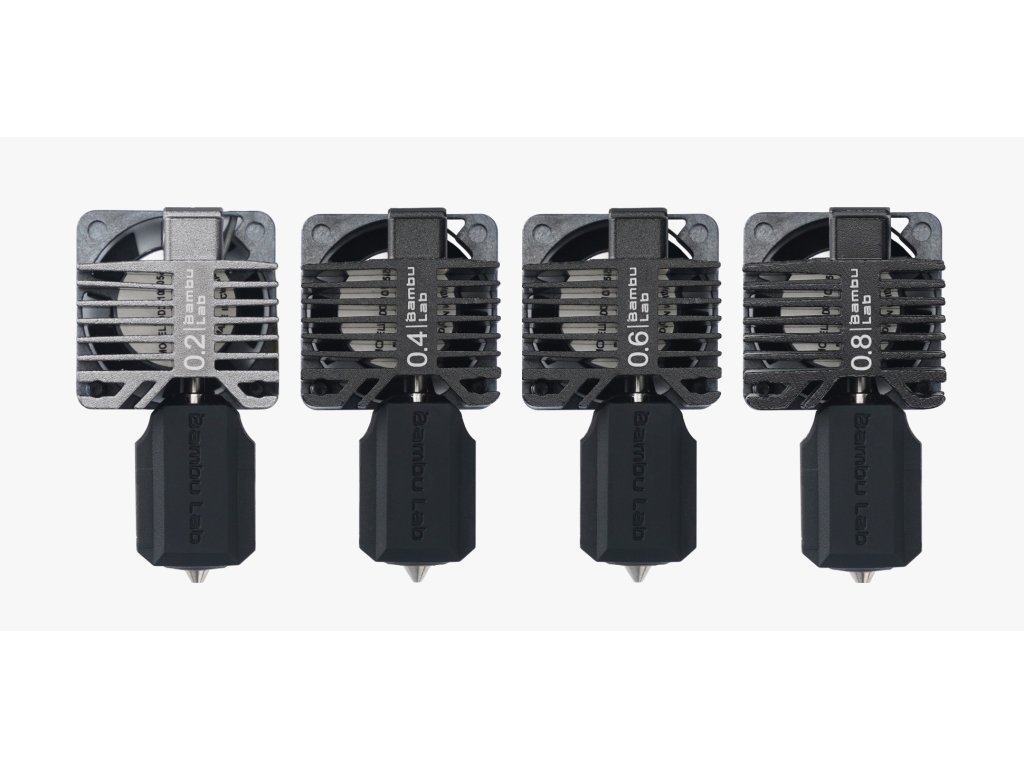 Hotendy Bambu Lab sa vyznačujú inovatívnym dizajnom „all-in-one“: heatsink, heatbreak, heaterblock a tryska sú integrované do jedného kusu.