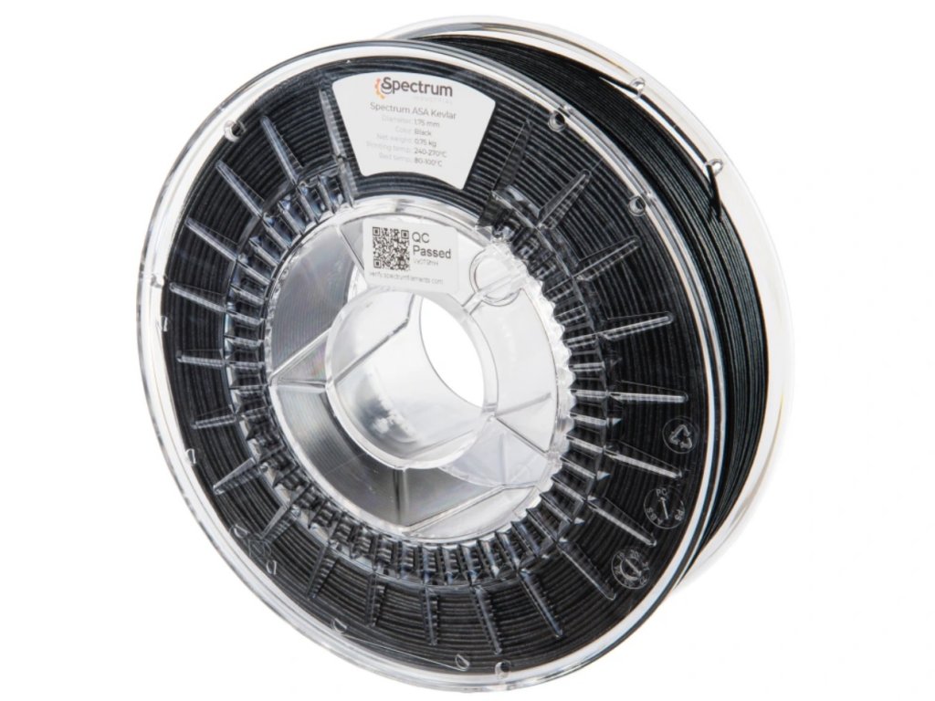 Vďaka nášmu novému vláknu si kevlar teraz nachádza svoje miesto aj v technológii 3D tlače. Komponenty vytlačené z materiálu Spectrum ASA Kevlar je možné použiť v aplikáciách, ktoré vyžadujú odolnosť voči slnečnému žiareniu a vysokú rázovú pevnosť (napr. nárazníky, ochranné prvky a pod.). Vďaka aramidovému vláknu je vonkajší povrch výtlačkov drsnejší, takže sú matnejšie a teda estetickejšie než klasická ASA.