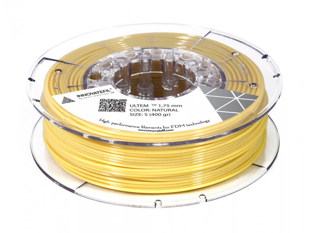 Innovatefil® PEI je vlákno vyrobené zo živice ULTEM ™ 9085. Vďaka vysokej teplote skleného prechodu ponúka vynikajúce vlastnosti pri zvýšených teplotách. Tento vysoko výkonný polymér ponúka veľkú tepelnú a mechanickú odolnosť, vynikajúcu rozmerovú stabilitu a veľmi dobrú odolnosť voči širokej škále chemikálií.