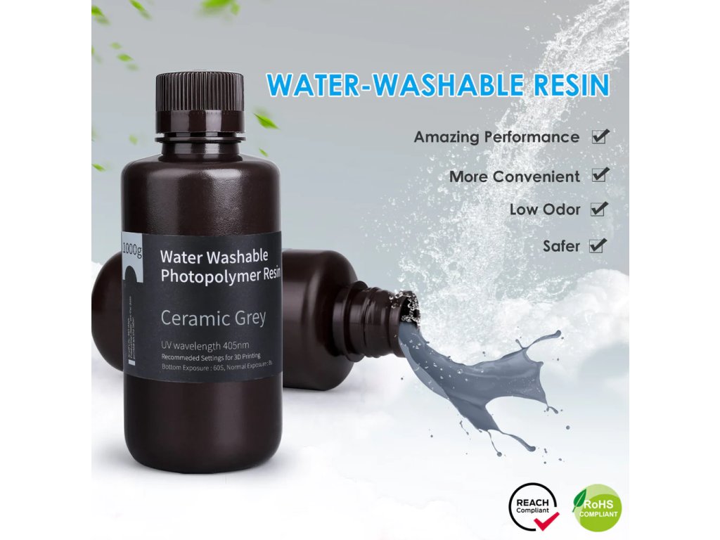 S vodou umývateľnou živicou už nemusíte používať drahé a nebezpečné rozpúšťadlá – stačí modely opláchnuť vodou. Použitú vodu však nie je možné vyliať priamo do kanalizácie alebo drezu. Pred vylitím by mala byť vystavená slnečnému svetlu, aby sa zvyšky živice úplne vytvrdili.
